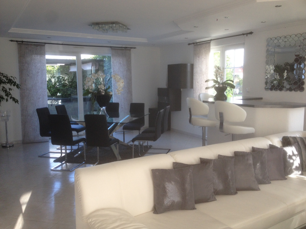 Vaste entrée, salon-séjour d'environ 50 m2 donnant sur la cuisine entièrement équipée, bureau, salle de bain avec douche, buanderie