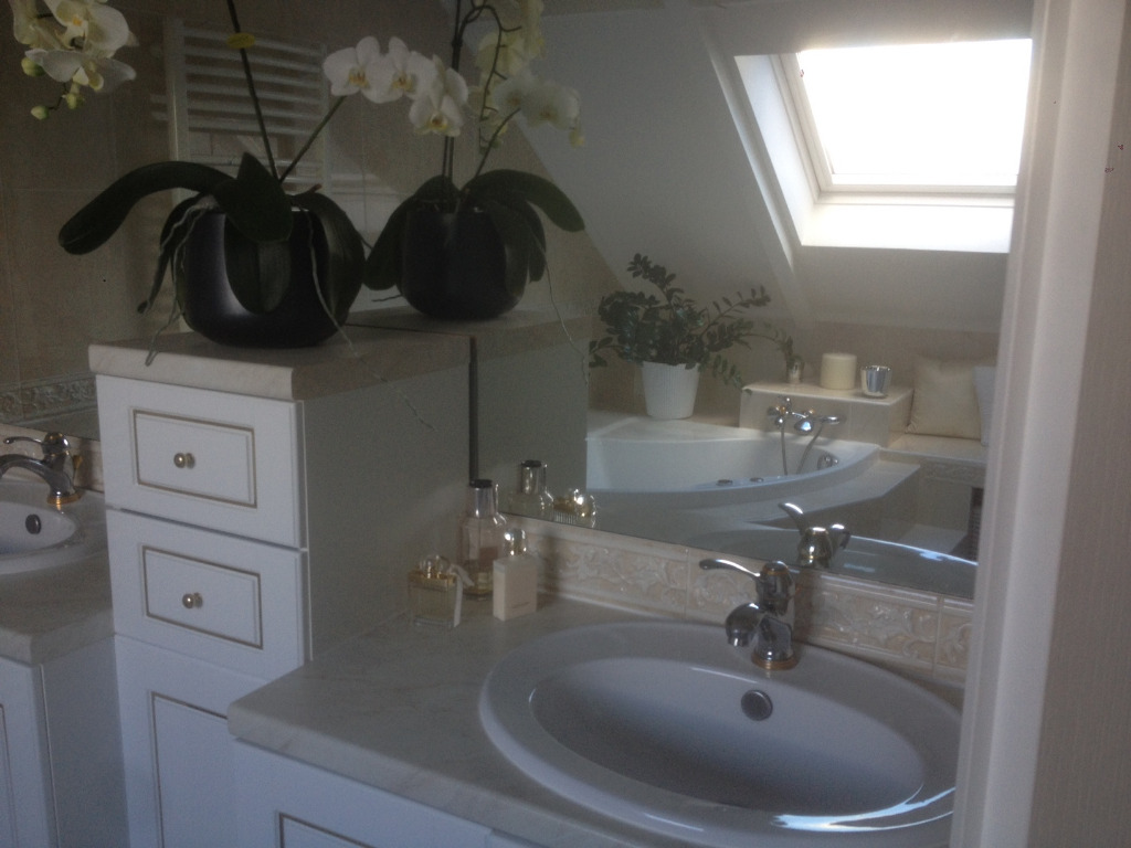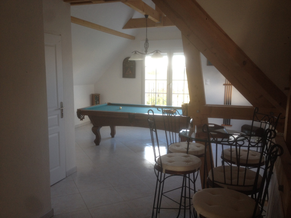 A l'étage: 3 chambres dont une parentale avec dressing, salle de bain avec baignoire d'angle, salle de jeux et mezzanine.
